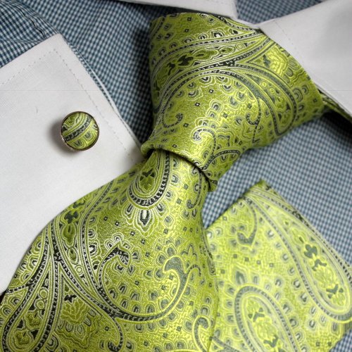 Green Patterned Woven Silk Tie Handkerchiefs Cufflinks Present Box Set green yellow great gifts Pointe Tie PH1075 One Size green yellow